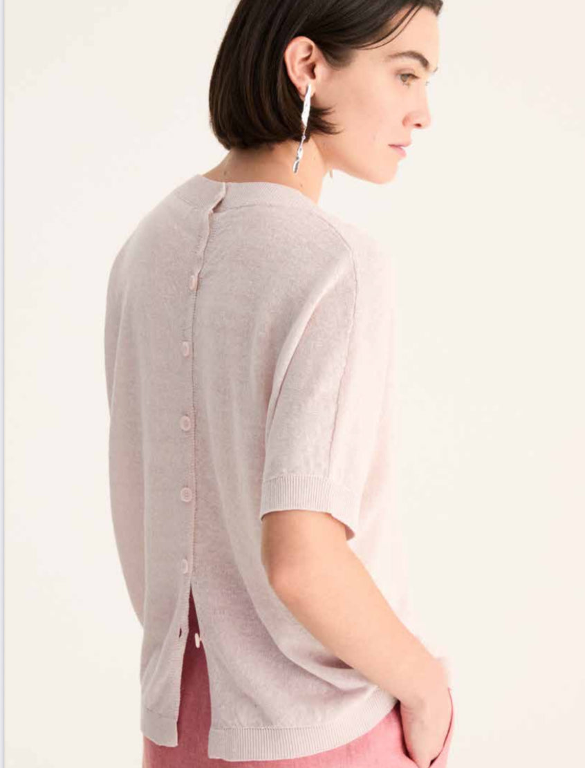 - Crafted from a luxurious linen-cotton blend, this fine Italian knitwear sweater combines breathable comfort with refined elegance. Featuring a distinctive button detail on the back, it's designed for versatile layering and effortless sophistication. Perfect for those who appreciate quality craftsmanship and timeless style, this piece transitions seamlessly from casual to polished occasions.