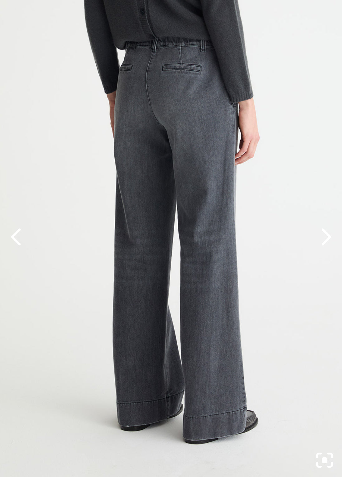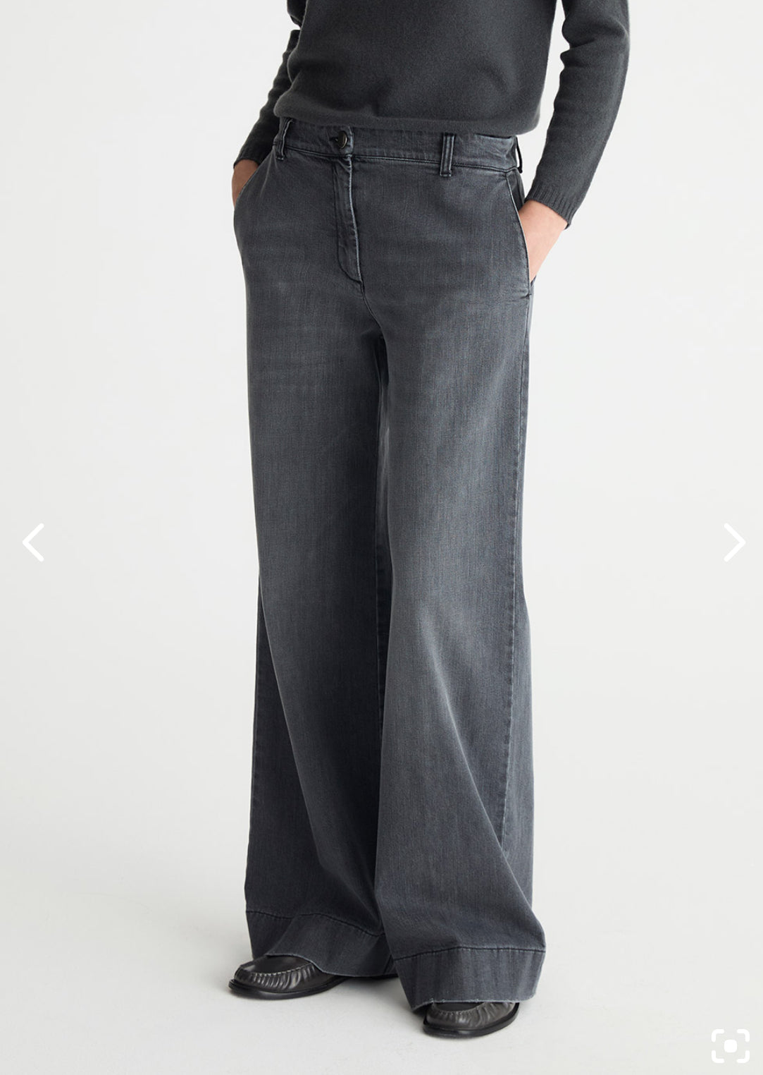 - Grey Wide-Leg Denim Pants crafted in Italy, featuring premium fabric and a contemporary wide-leg design.