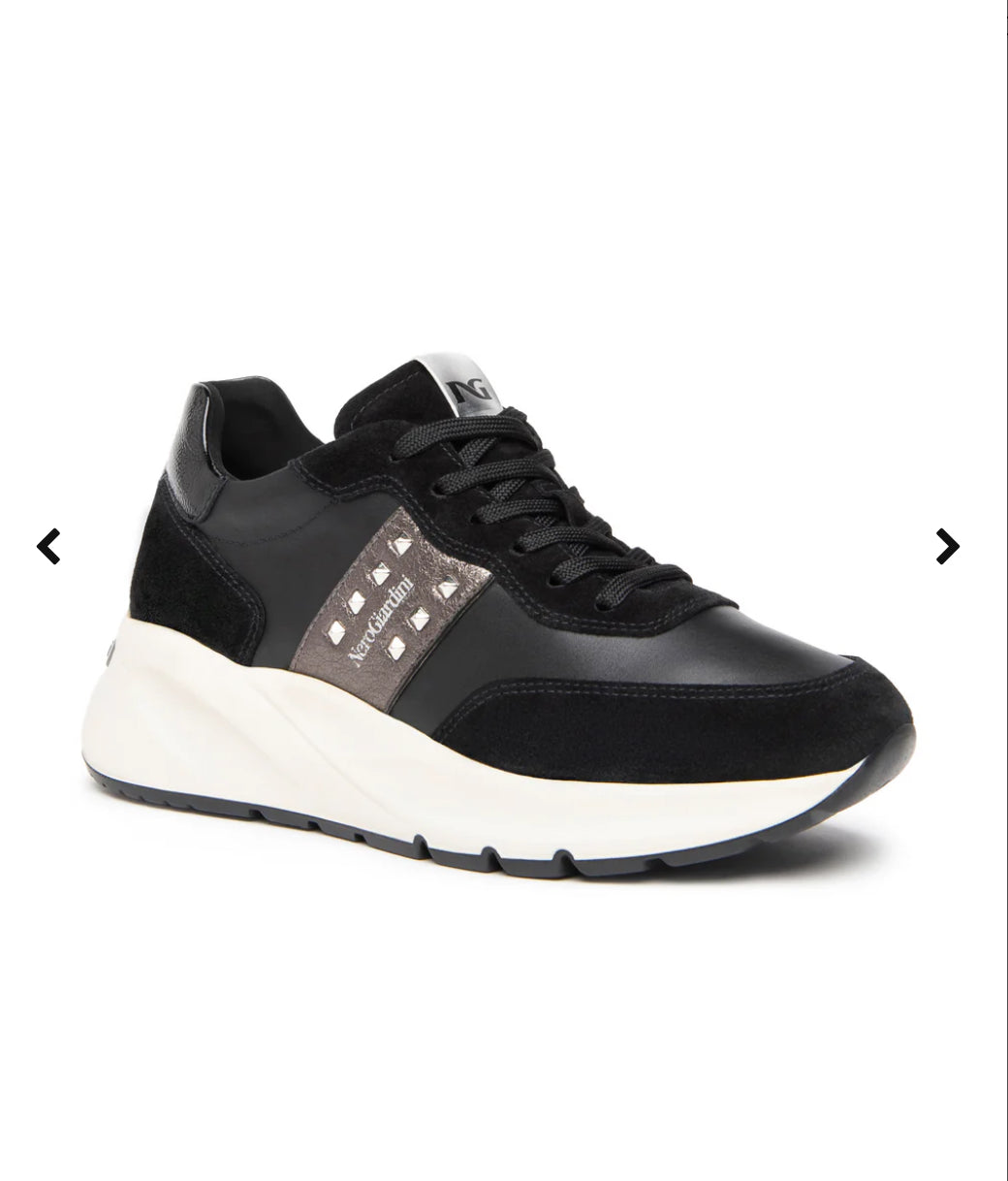 - NeroGiardini sneakers, personality and unique style. NeroGiardini footwear is made in Italy from high quality materials, using the latest crafting techniques. Each shoe is the result of artisan know-how passed on from generation to generation. All styles are designed to provide versatile comfort all day, at work or on a special evening. NeroGiardini’s designs are always inspired by new styles, its shoes always on trend and one of a kind. NeroGiardini’s bag collection: a range to match your shoes, for an impeccable total Made in Italy look. The DryGo!® technology insole absorbs moisture and guarantees your comfort and well being. The Made in Italy production of NeroGiardini footwear is labelled with the flag printed on the outsole and on the packaging.